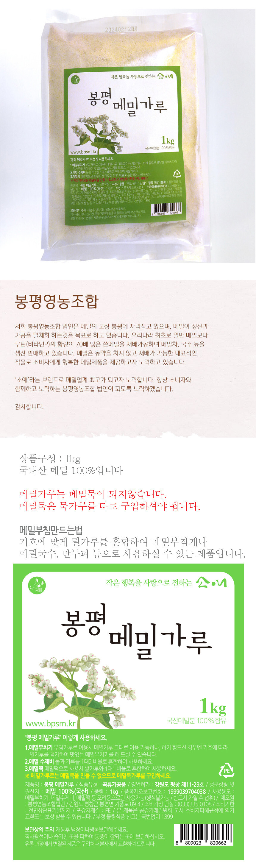 ※ 순메밀가루는 메밀묵이 되지않습니다.